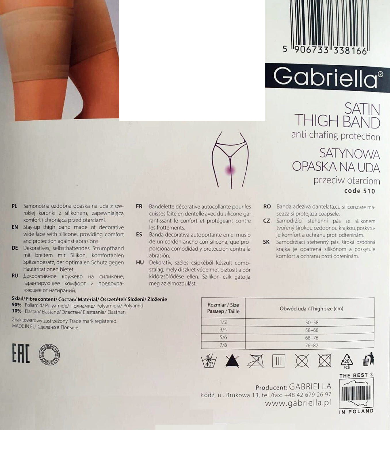 Satin, self-supporting thigh band that prevents redness and chafing of the thighs. Made of high-quality, elastic yarns, it provides a perfect fit to the shape of the female figure. Satin knitwear lined with silicone strips makes the thigh band extremely elastic and at the same time very durable. Simple, smooth finish is perfect for everyday use, especially on hot days. Wide size range is a response to the needs of women with very feminine shapes. Composition: 90% polyamide, 10% elastane.