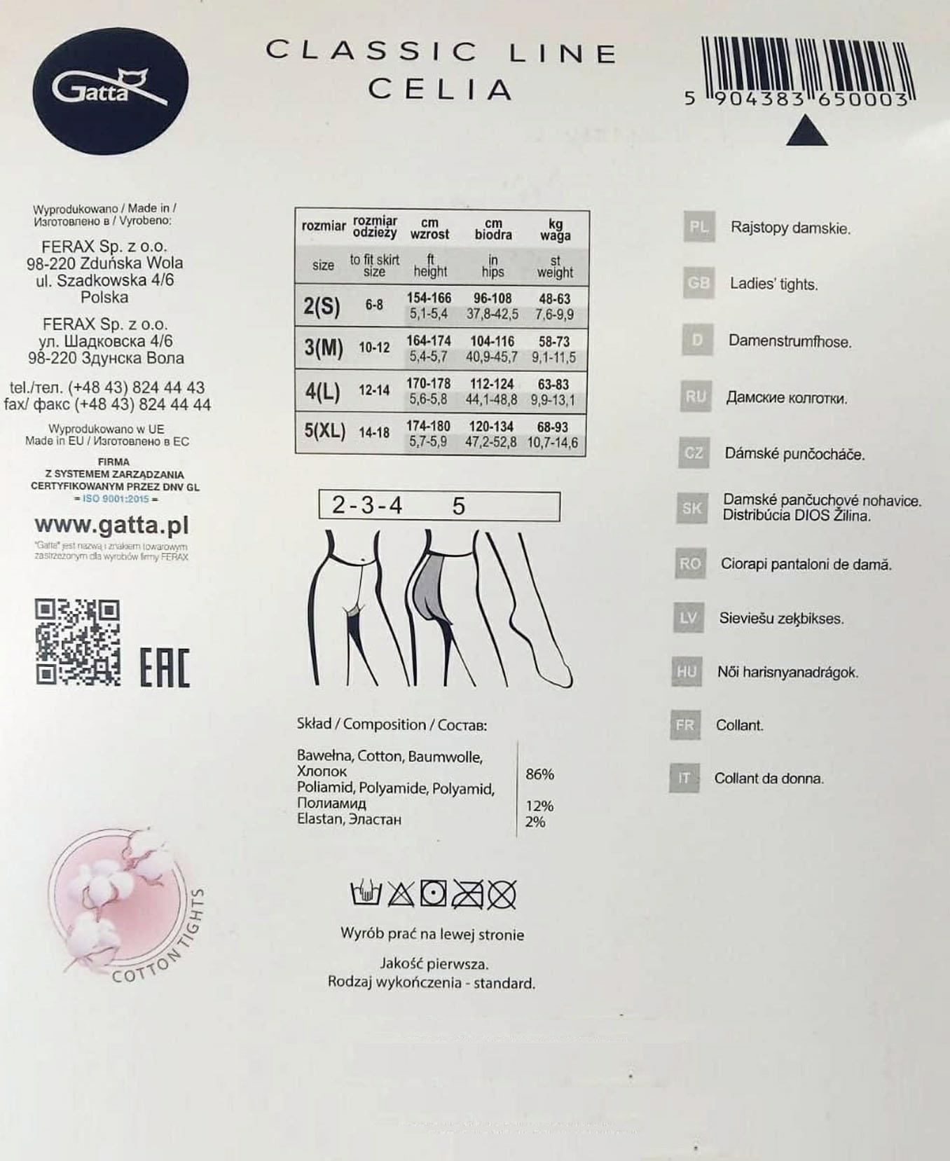 Comfortable, warm women’s cotton tights in an intense black. Opaque, matte, and made of the highest quality natural fibers that resist peeling and wrinkling. Finished with a comfortable, non-pressure band. The tights have a seamless panty section and a gusset. The lack of reinforced toes makes them suitable for open shoes. Composition: 86% cotton, 12% polyamide, 2% elastane.