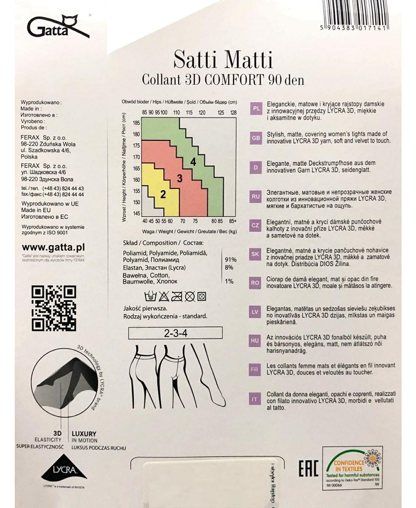 Elegant, smooth, and timeless women’s tights. Opaque, matte, made of the highest quality yarn using Lycra 3D technology. These tights feature a seamless panty and toe section. Exceptionally comfortable, satin-like, and soft to the touch, they perfectly conceal natural skin tones and any imperfections. Perfect for cool days. Thickness: 90 DEN. Composition: 91% polyamide, 8% elastane, 1% cotton.
